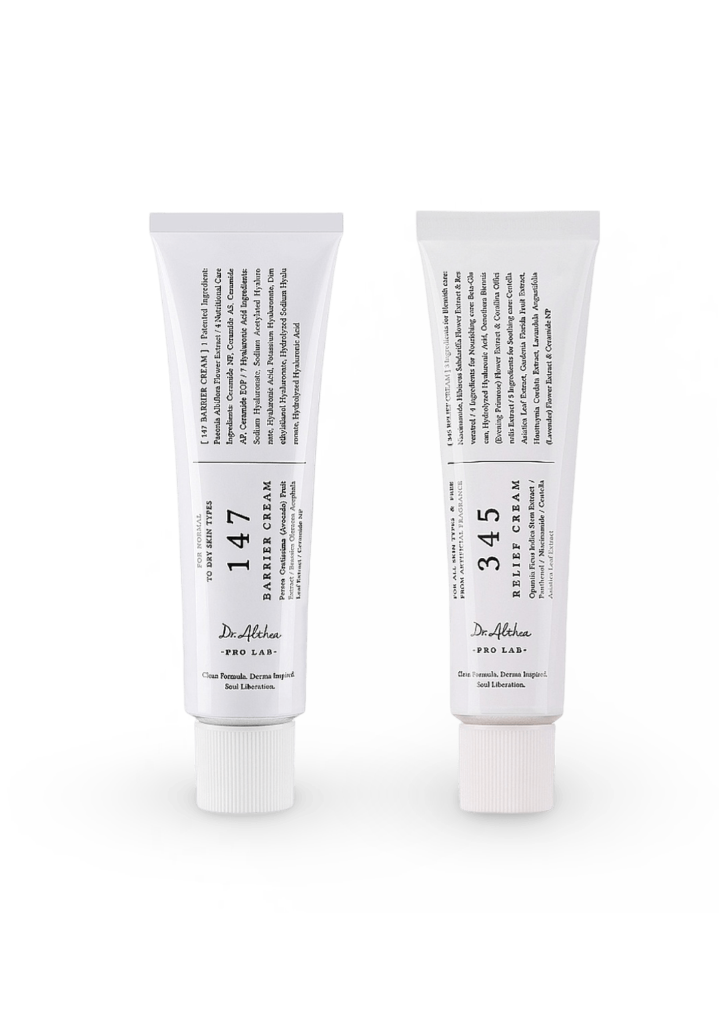 Dviejų stipriausių Dr. Althea kremų duetas: 147 Barrier Cream stiprina apsauginį odos barjerą, o 345 Relief Cream ramina, drėkina ir mažina sudirgimą. Tobulas rinkinys jautriai, pažeistai, išsausėjusiai ar sudirgusiai odai.