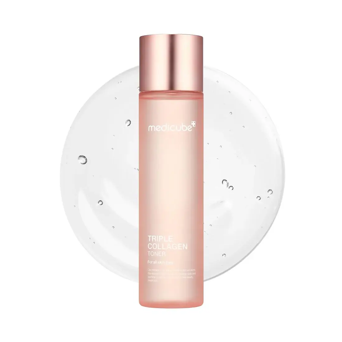MEDICUBE Triple Collagen Toner – intensyviai drėkinantis ir stangrinantis veido tonikas su trijų rūšių kolagenu, hialurono rūgštimi bei niacinamidu. Ši lengva, bet galinga priemonė akimirksniu atkuria drėgmės balansą, suteikia odai „putlumo“ ir paruošia ją tolesniems rutinos žingsniams, palikdama sveiką švytėjimą.